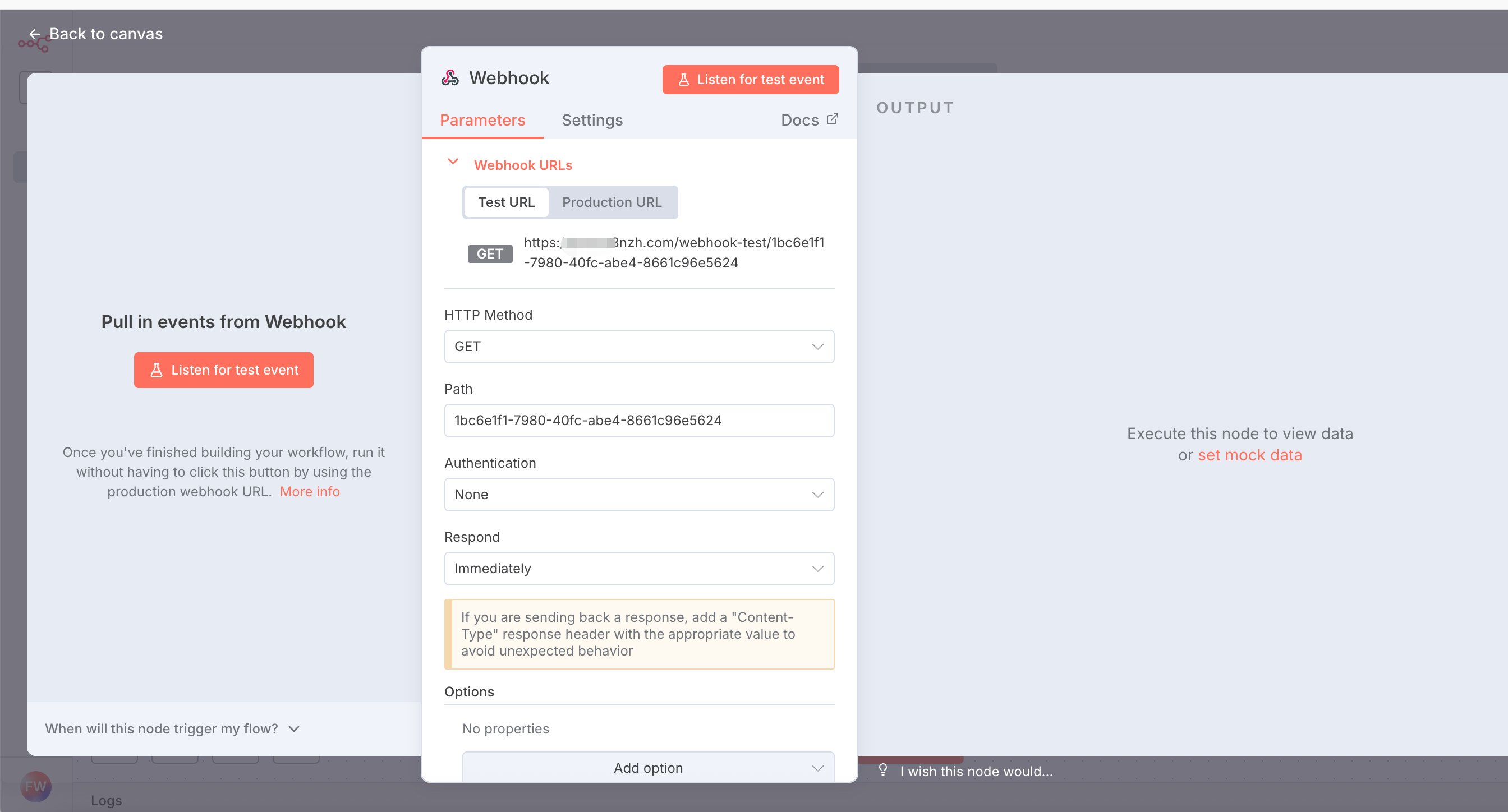 1.当我们打开webhook节点时,会看到一个url。是localhost.我们需要将这个url配置成我们的域名。