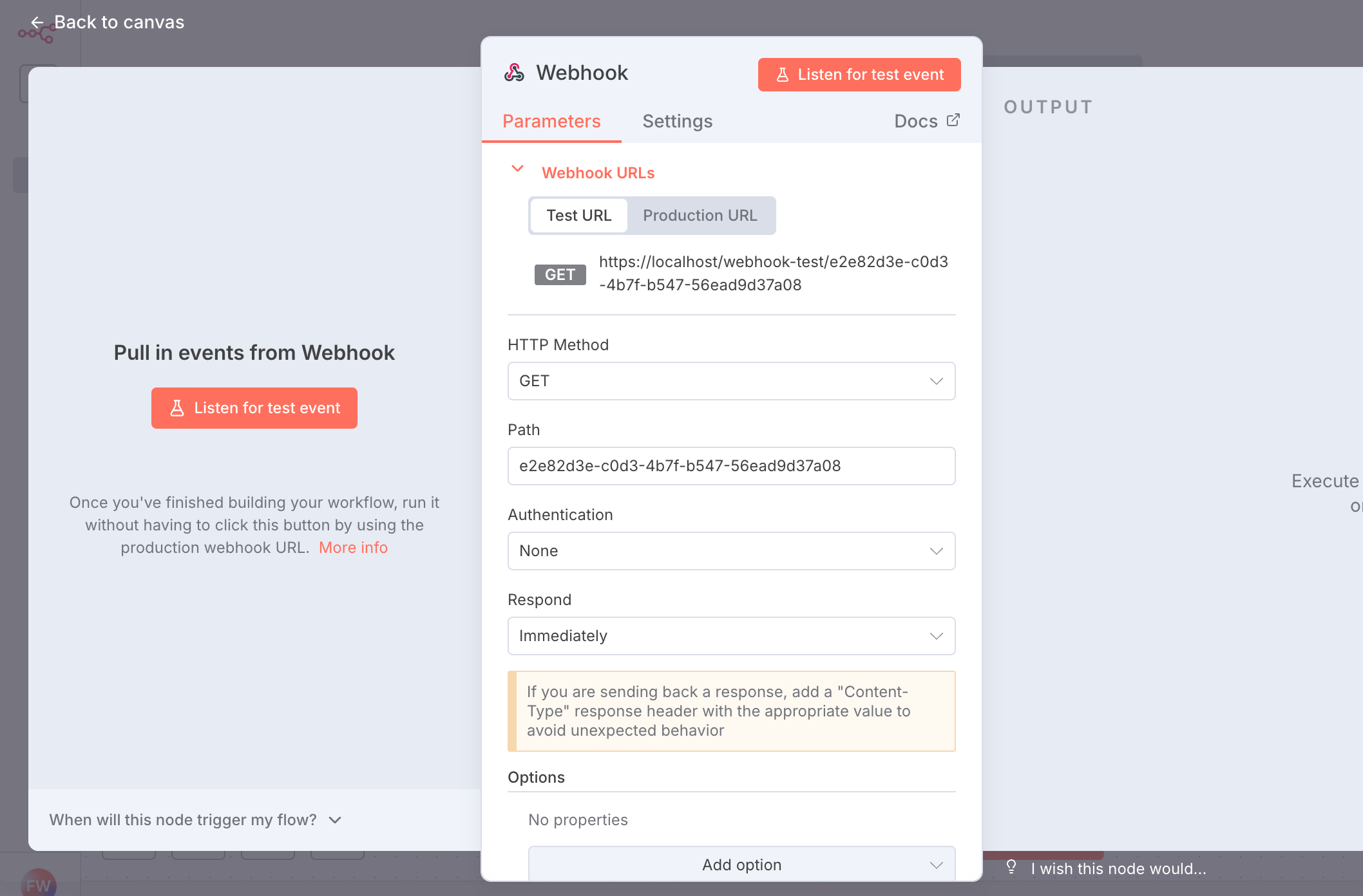 1.当我们打开webhook节点时,会看到一个url。是localhost.我们需要将这个url配置成我们的域名。